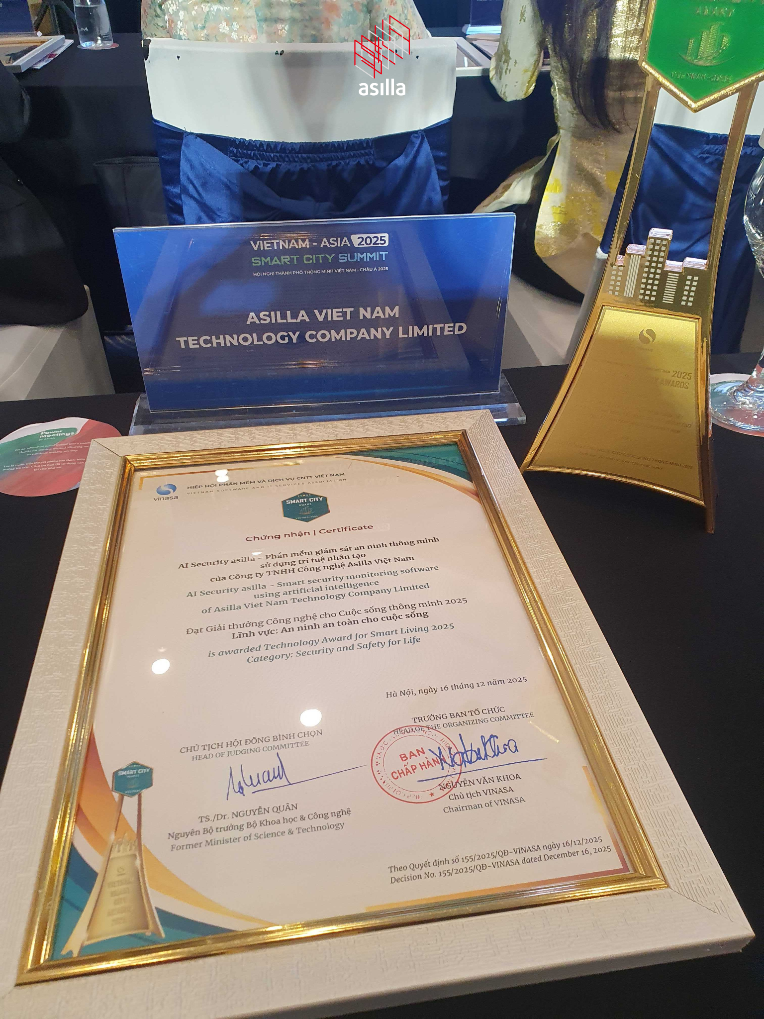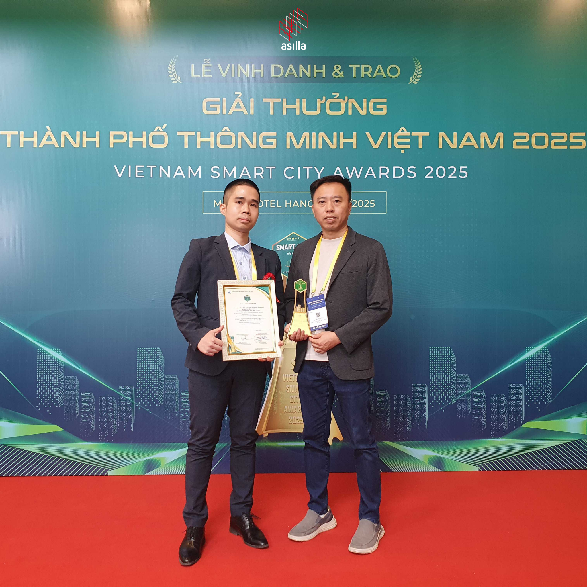 Ngày 23/12/2025, trong khuôn khổ Hội nghị “Thành phố thông minh Việt Nam - Châu Á 2025”, Công ty TNHH Công nghệ Asilla Việt Nam đã xuất sắc được xướng tên tại Lễ trao giải Thành phố Thông minh Việt Nam. Với giải pháp AI Security Asilla, Asilla tự hào mang đến bước đột phá trong lĩnh vực giám sát an ninh, góp phần kiến tạo cuộc sống an toàn và thông minh hơn cho cộng đồng.